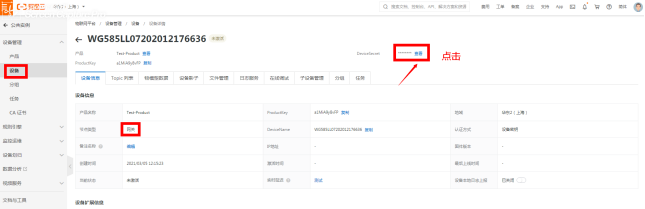 选择刚添加产品设备的名称,这里DeviceName填的是设备的名称定义(可根据实际场景)详见图2