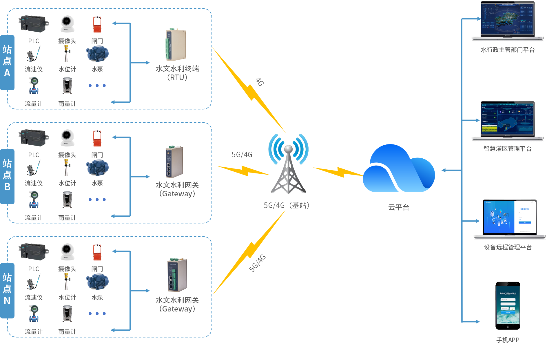 实现对水泵、闸门等设备PLC的远程控制,结合实时数据和实时视频,合理调整闸门状态,增强工作灵活性,实现无人值守。