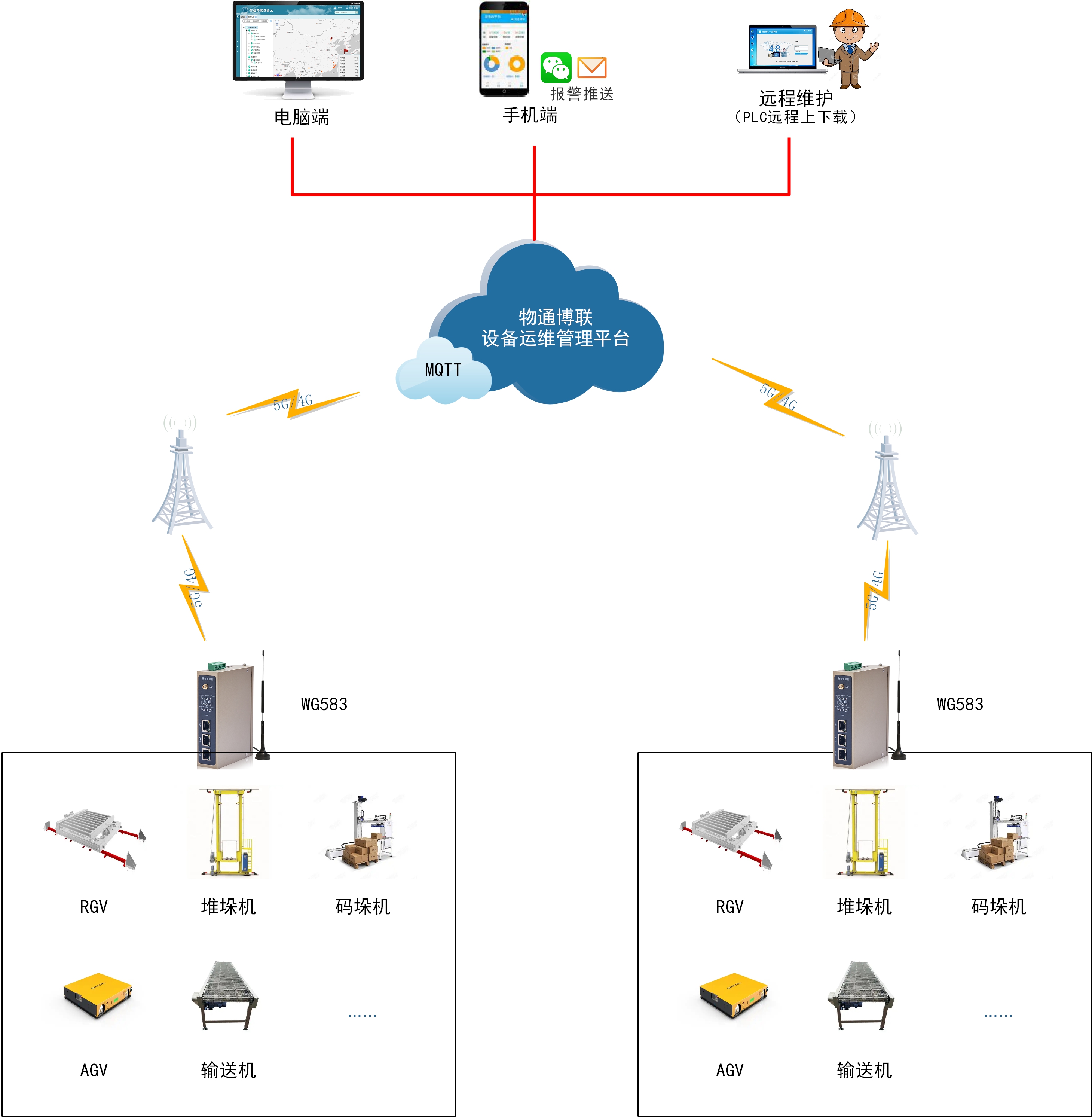 以往设备出现故障由客户报修,企业派工程师前往现场进行排查和维护工作。随着经营规模越来越大,繁重的运维工作量、高昂的出差食宿成本等问题成为影响企业经营利益的重要因素。因此要求实现仓储设备的远程维护,即PLC远程上下载程序。